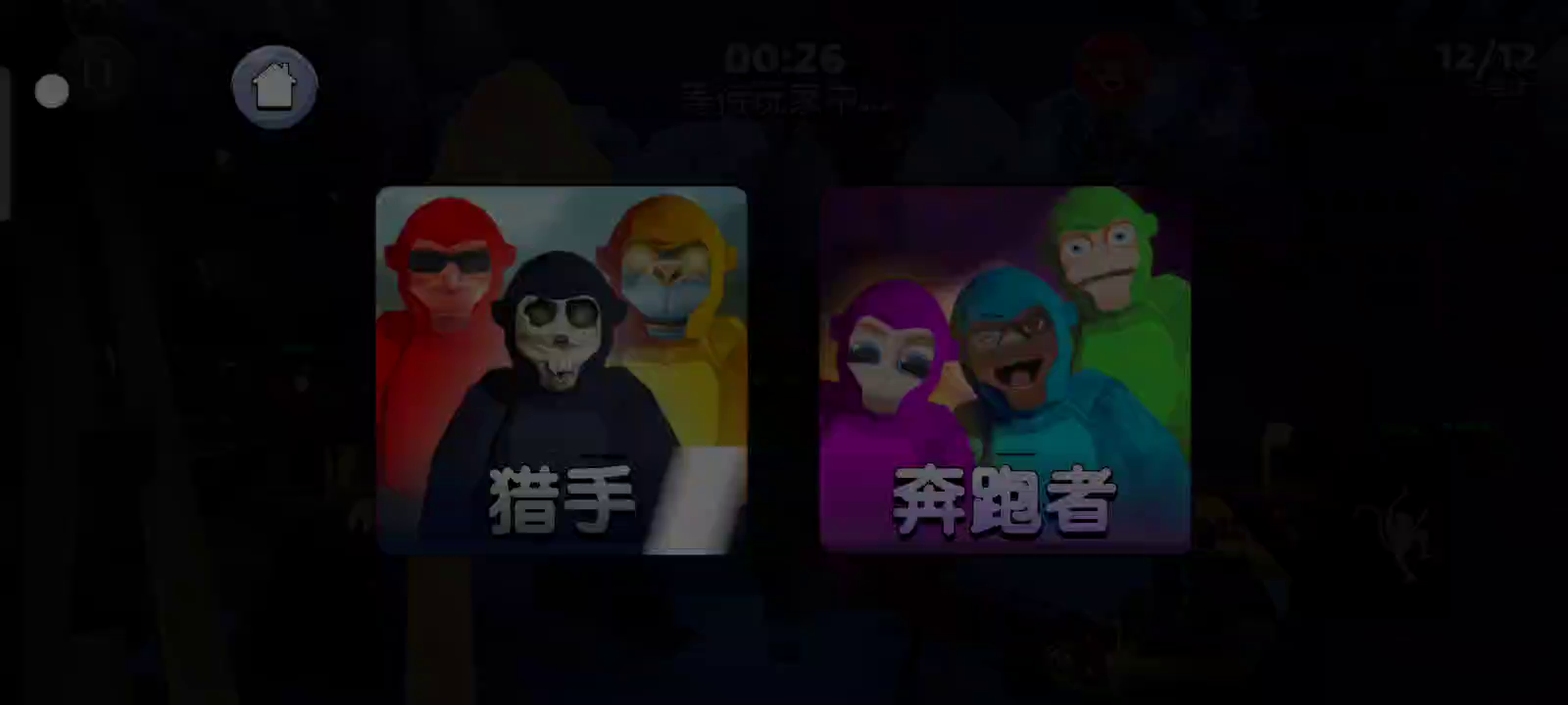 您可以扮演猎人大猩猩或奔跑猴子。在密室躲藏和寻找,尽可能多地生存。如果您是大猩猩猎人,则必须在 3 分钟内寻找并抓住所有其他奔跑者。如果您是奔跑者,则必须在不被抓住的情况下生存隐藏 3 分钟,如果您被抓住,则成为大猩猩猎人。