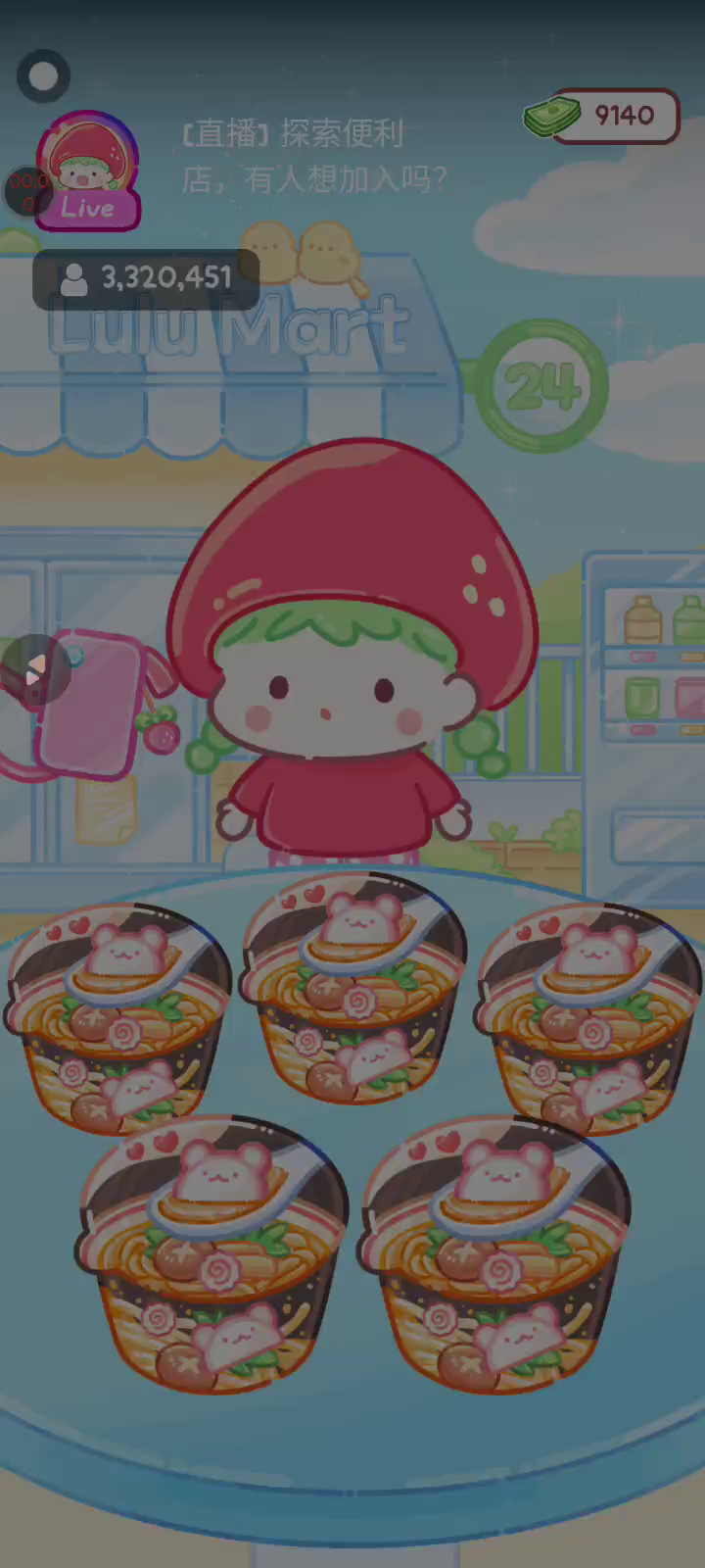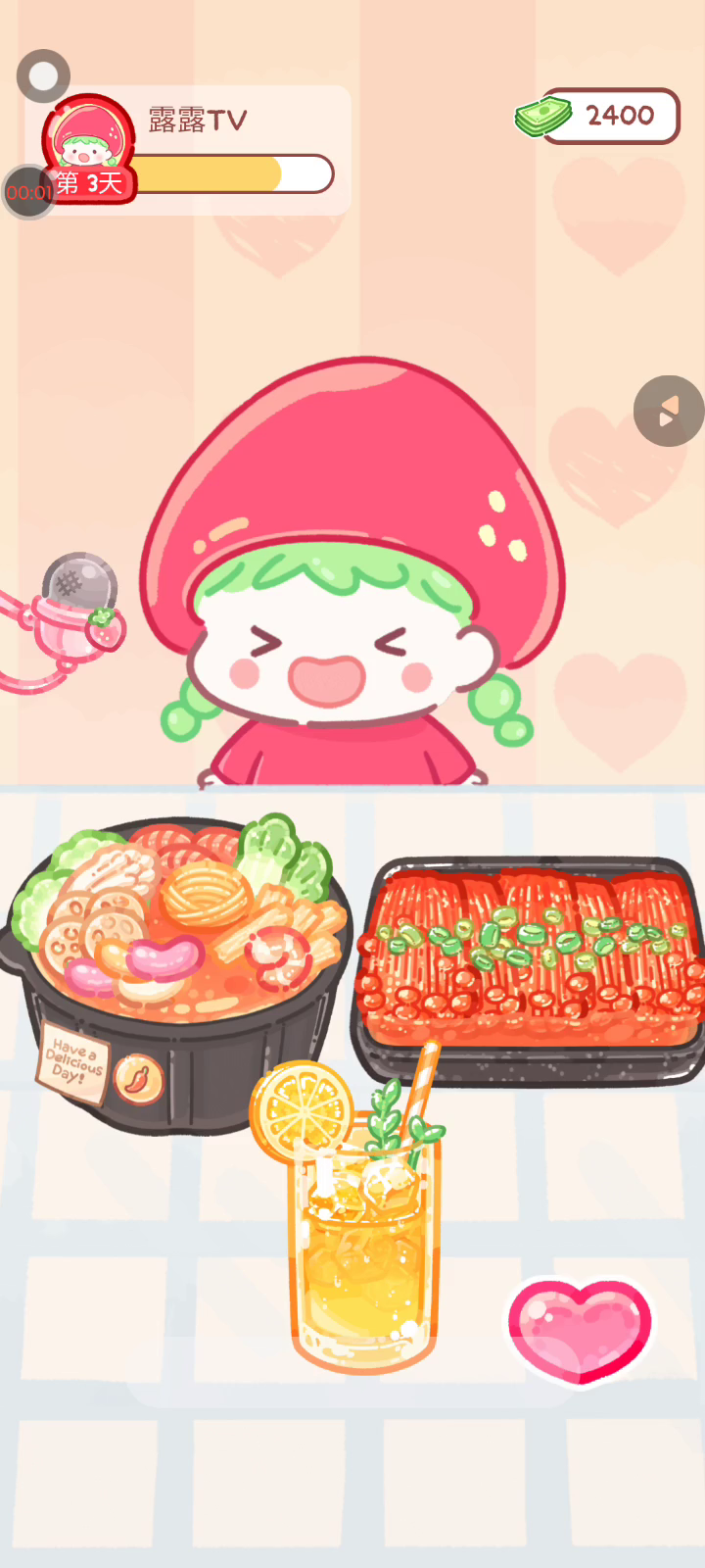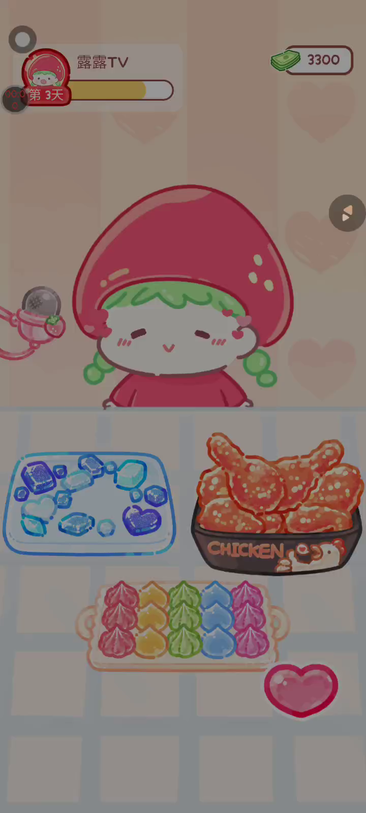 更新宠物!!! 「你进行草莓糖葫芦吃播的话,我就赞助100元。」 「脆口的声音太迷人了(°θ°)」 由于客人都被最近新开的许多糖葫芦店家抢走,曾经号称糖葫芦达人的父母因此卧病在床。 继承父母店面的主角露露开始糖葫芦吃播来宣传店面。 直到成为真正的糖葫芦达人那一天! 「今天我也要开始糖葫芦直播罗!( •o• )」 [串材料] 只有新鲜的水果的话,很难以一名吃播实况主存活下来。还要有松饼、地球软糖、青阳辣椒!利用奇特的材料制作糖葫芦吧。 [裹糖衣] 将材料串满竹签的话,就放进锅子搅动吧。唯有利用达人的秘法,才能裹出又薄又脆的糖衣。 [即时吃播] 咔哒咔哒!今天的吃播也大成功。热烈的聊天内容看起来反应也不错。看来得利用完成观众任务得到的赞助金来买新材料了! 来,准备好了吧?现在就马上挑战成为糖葫芦达人吧!