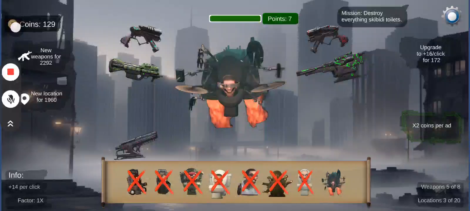 一个关于斯基比迪厕所的点击游戏,你必须摧毁所有厕所并收集所需的积分数才能打开摄影师和启示录按钮