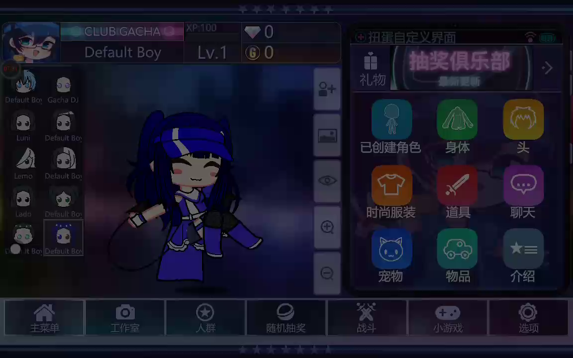 加查俱乐部是一款玩法非常有趣的趣味换装游戏,二次元卡通的画面风格,独特的建模画面风格带给玩家视觉上的享受,玩法丰富有趣,操作更是简单极易上手没有任何的难度,喜欢的小伙伴们快来下载游戏体验一番吧。在扭蛋俱乐部中创建自己的动漫风格角色,并以自己喜欢的时尚装扮打扮他们!从成千上万的礼服,衬衫,发型,武器等等中进行选择!设计角色之后,进入Studio并创建您可以想象的任何场景!添加宠物,物品并选择你喜欢的背景!