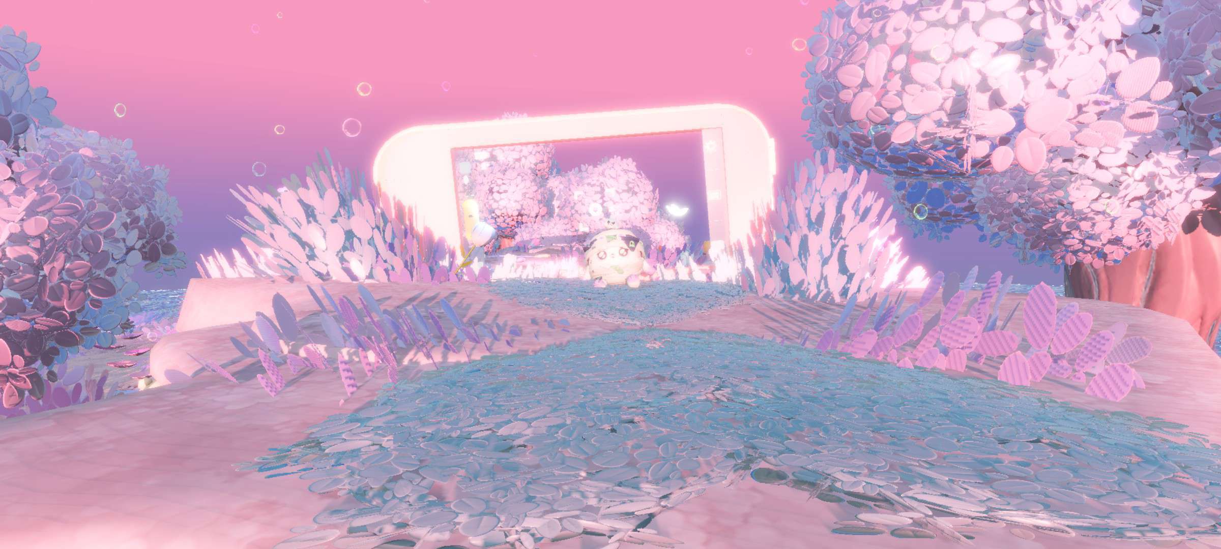 🐾瞧!那一丝丝淡紫的云彩 像是给天空留下浪漫的痕迹💘在阳光的照射下 那些气泡如同透明的宝石 闪耀着迷人的光彩✨🕸️色彩斑斓的花朵站立在地上🌺远处像是有人在跟我们打招呼🌸在晚霞瑰丽的色彩中 爱意更是挺身而出❤️