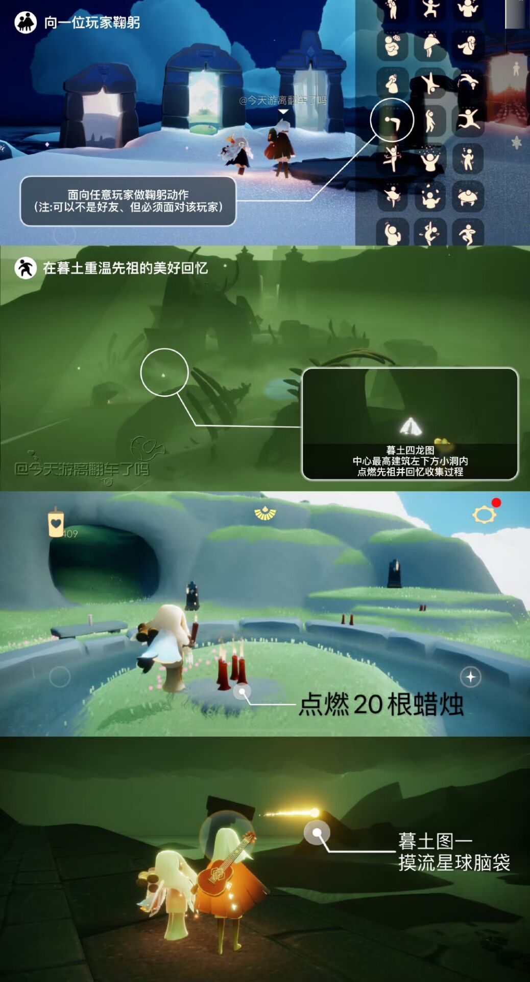 《光遇》游戏中每天的每日任务及大蜡烛的位置都不相同,玩家完成每日任务及收集大蜡烛都可以得到丰厚的兑换奖励,奖励可以用于兑换各种动作及道具,不过很多小伙伴不知道每日任务怎么做,又懒得自己去找大蜡烛的位置,我们汇总了每日任务的完成攻略以及蜡烛位置,一起来看看吧!