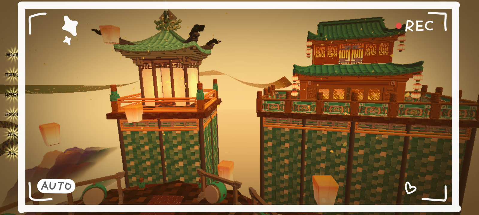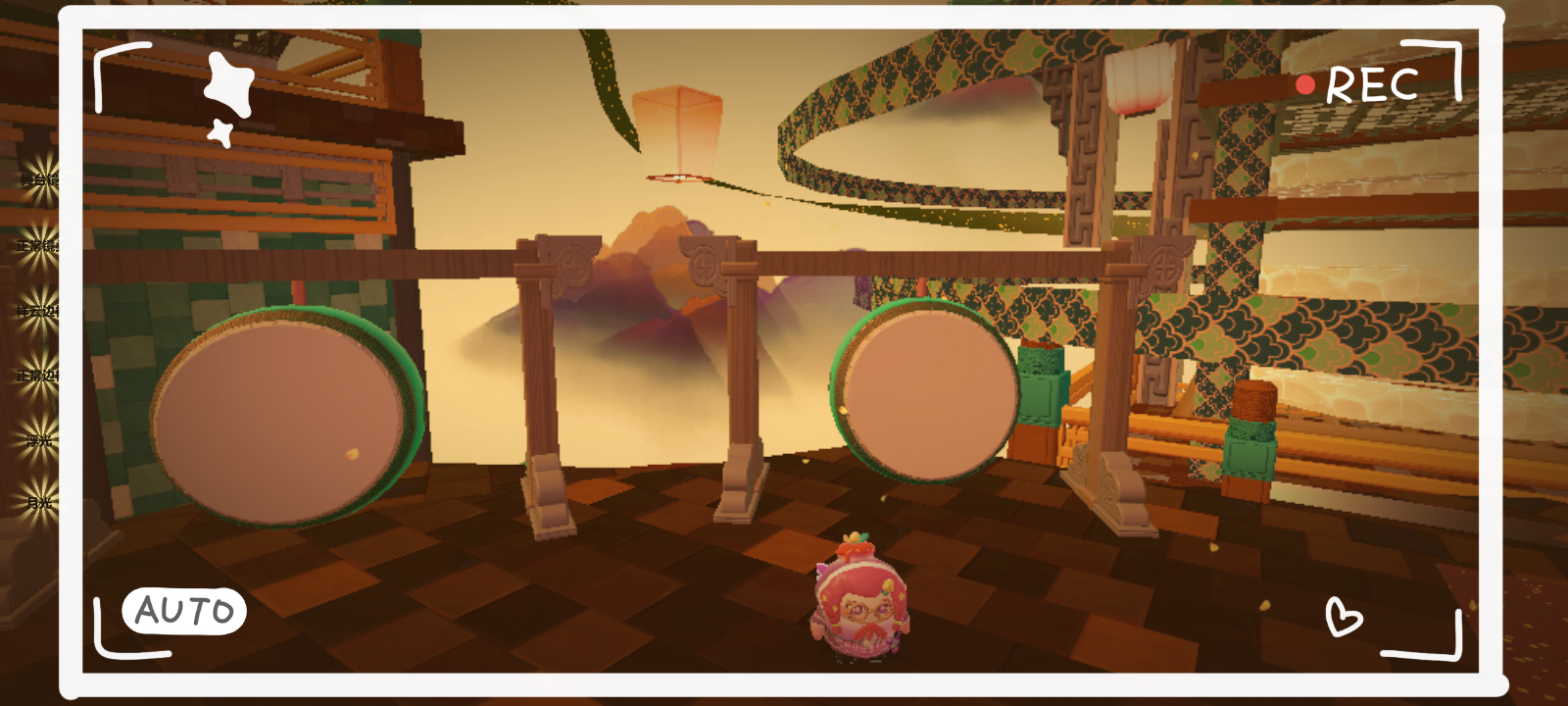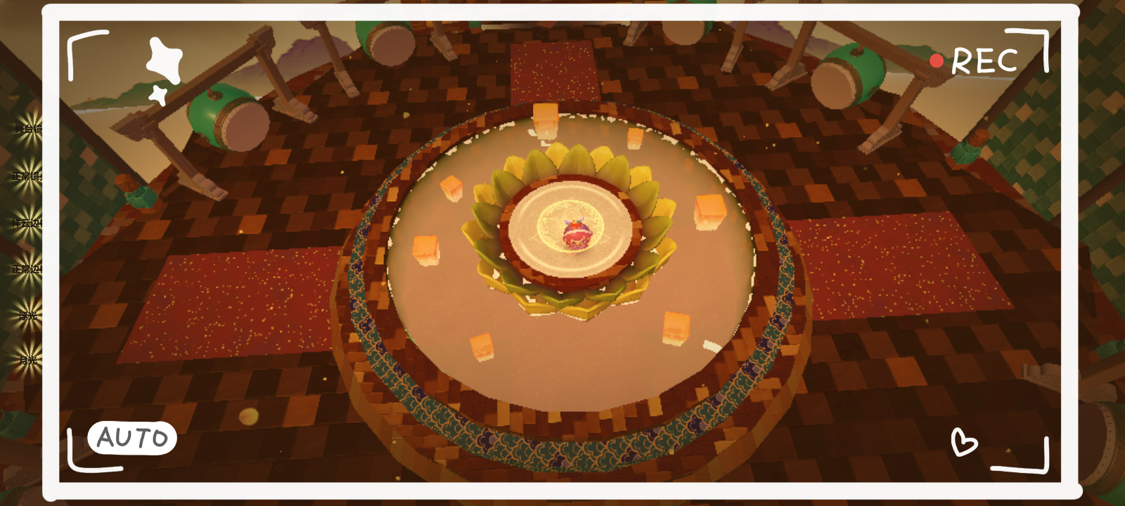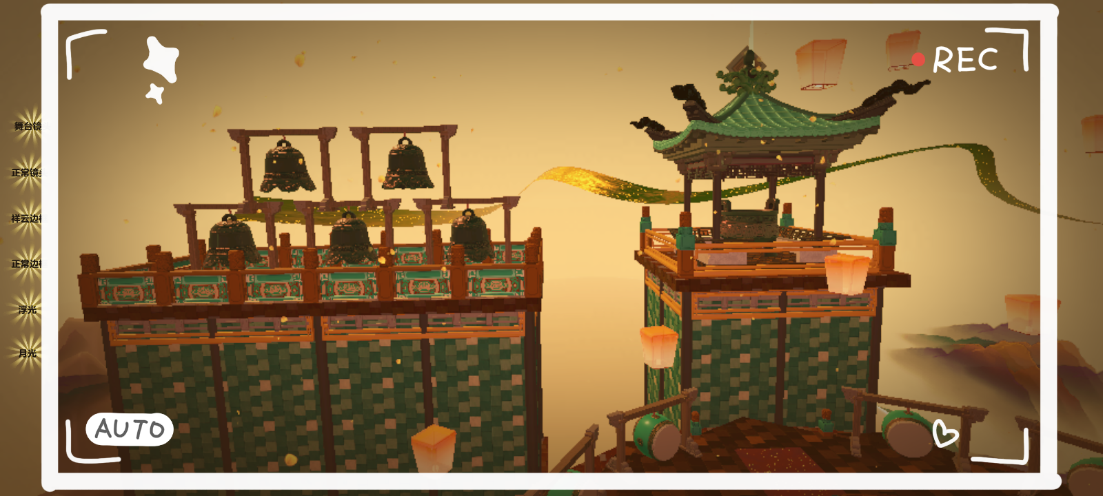 往前再走,中间一个圆形地基,正前方有一座宫殿,宫殿四周环绕着两圈丝绸,不停的转动着,周围整个天空都是孔明灯