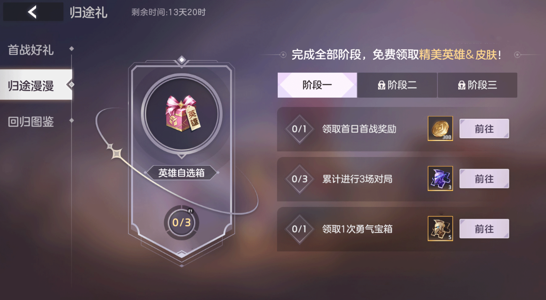 伴你长长久久,完成阶段任务,可领取英雄自选箱、精美非凡皮肤