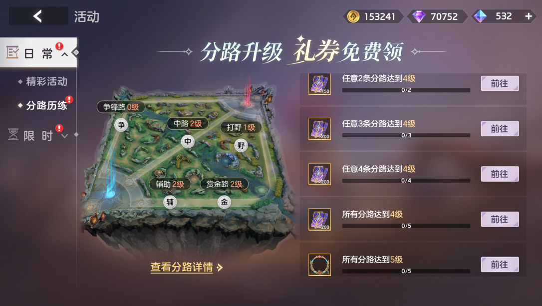 入口:活动-活动驿站-日常-分路历练