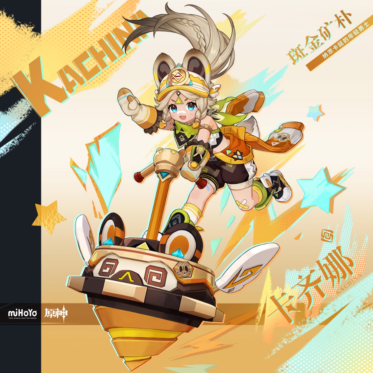 像「回声之子」中的其他孩子一样,憨态可掬的嵴锋龙、山脉深处挖出的闪亮宝石、长辈间口口相传的英雄故事陪伴卡齐娜成长。她熟悉山间道路、擅长寻觅深埋于地底的矿藏,闲暇时常常和其他孩子一起,跑去唱片艺人们灌制音乐的工作室,踩着节奏随性跳舞。磕碰总是难免的,卡齐娜也会因为疼痛而落泪,不过在其他孩子还没有从痛楚中缓过劲来的时候,她已经抹去眼泪,重新站了起来。