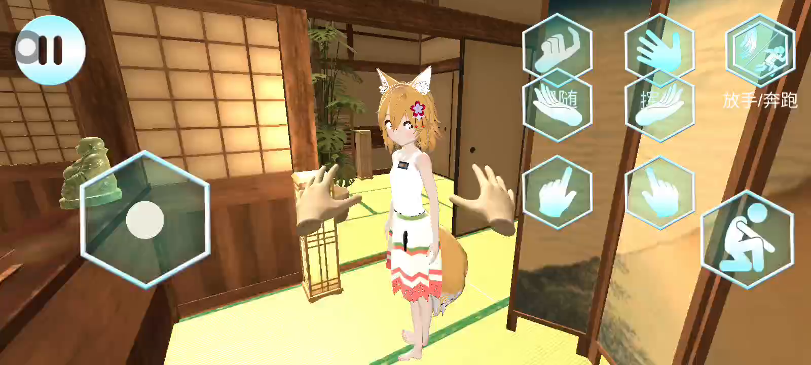 一款采用VR技术打造的恋爱模拟休闲游戏,第一人称视角具有极高的代入感和真实感。 玩家在游戏中将会拥有一个萌萌哒的虚拟女友,可以和她一起进行日常互动,可以给她穿搭多样漂亮的服饰,带她出门约会! 给她送礼、喂食、讲话聊天都可以提升好感度,好感度足够高就能解锁更加亲密的行为哦! 游戏特点: 1、你将拥有一个萌萌哒的虚拟女友,当然她是有脾气的,所以别乱来哦! 2、你可以给女友换衣服搭配造型,给她做饭洗澡,培养感情,解锁更多福利! 3、真实感爆棚的VR模式,让你可以体验到甜蜜又真实的恋爱约会! 4、高度自由的玩法,多样的互动内容和有趣的互动效果等待你的发掘! 5、单身贵族与孤独患者的福利!谁会拒绝拥有一个可爱软萌的女友呢?