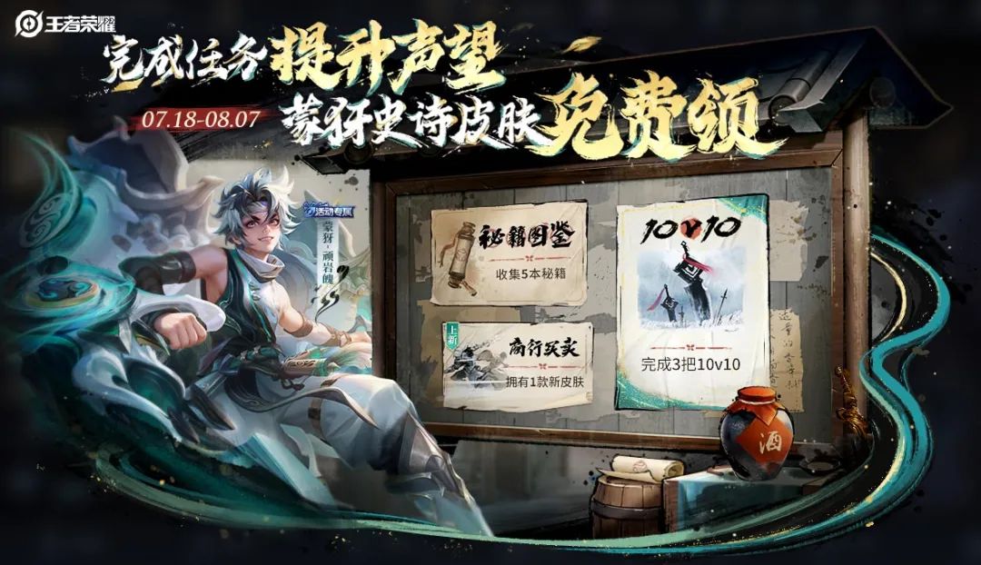 全新史诗皮肤开送,超多福利等你拿!10v10劲爆来袭,水墨武侠世界开启!