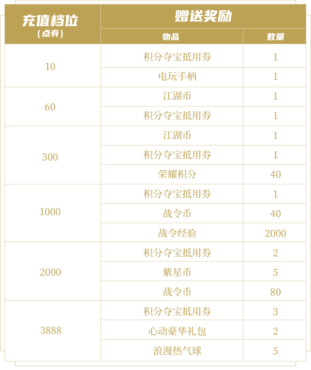 ◆心动豪华礼包:打开礼包可任意选择以下奖励之一:铭文碎片*600、战令币*80、战令经验*4000、紫星币*5