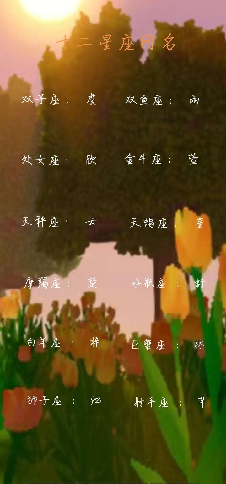 十二星座网名(不喜勿喷)