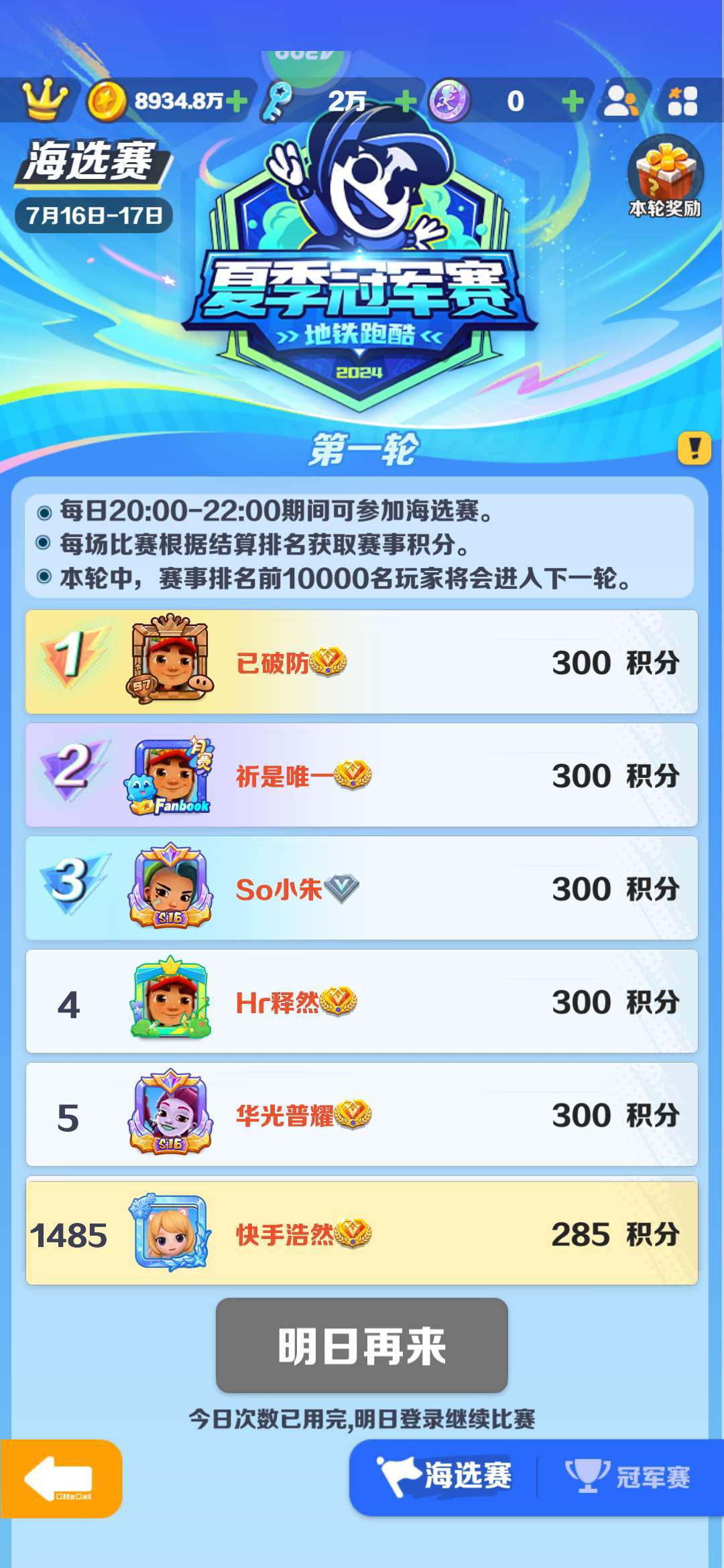 地铁跑酷分数赛就是好玩