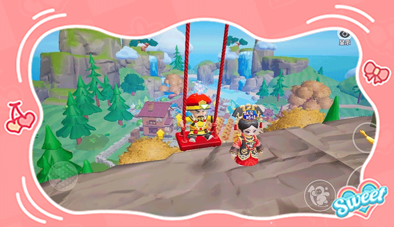 在农场中驾驶载具时,星宝们不仅可以环绕农场巡视兜风,还可以飞上远处的山崖!