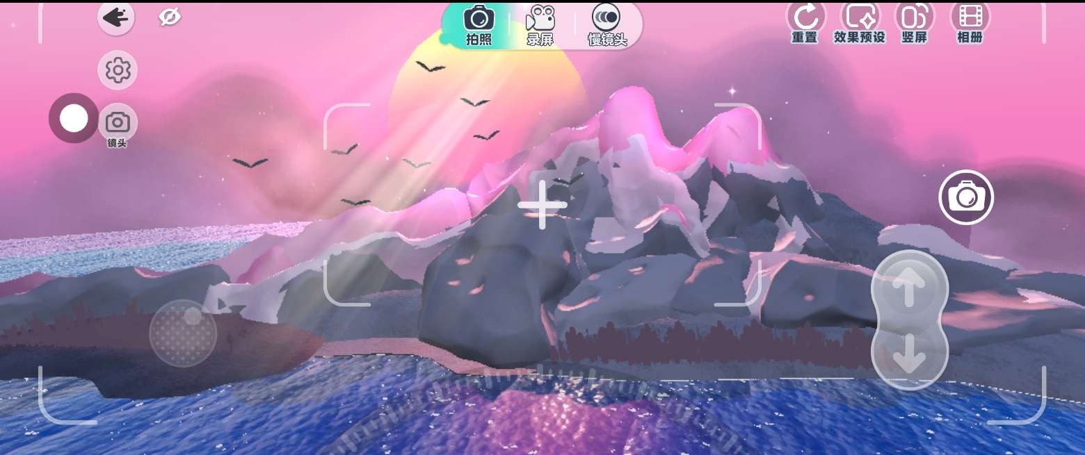 开头全景,这里是一个樱花树,也配上晚霞,不要太美了吧?还有湖水清澈见底,还有一小小段段的跑酷呢!