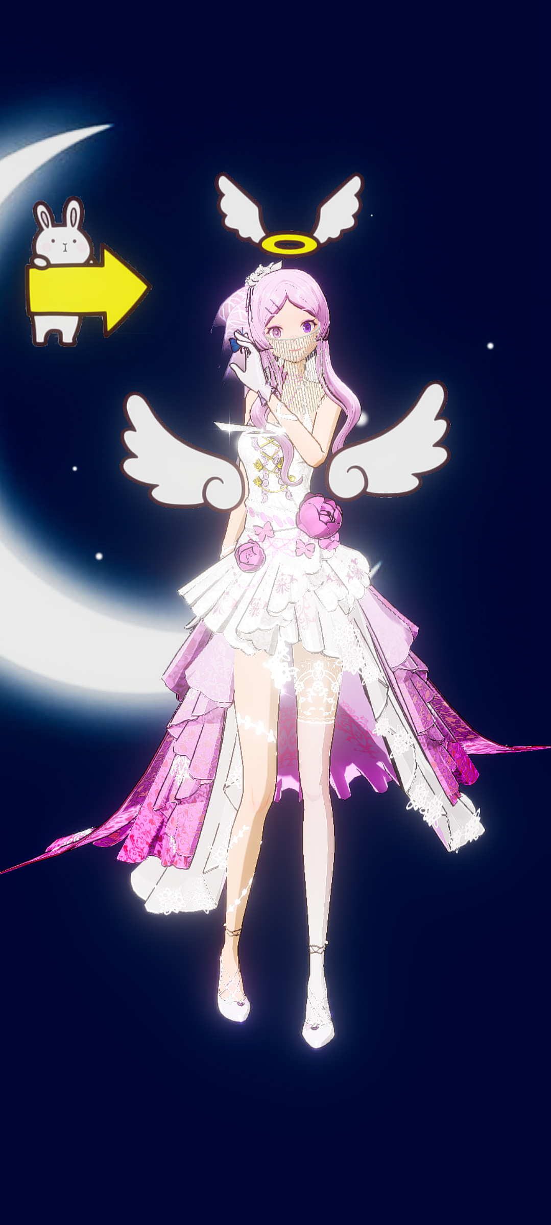 这是我的新装扮。有翅膀的还有那个兔子是我贴的贴纸。但不要模仿哦。