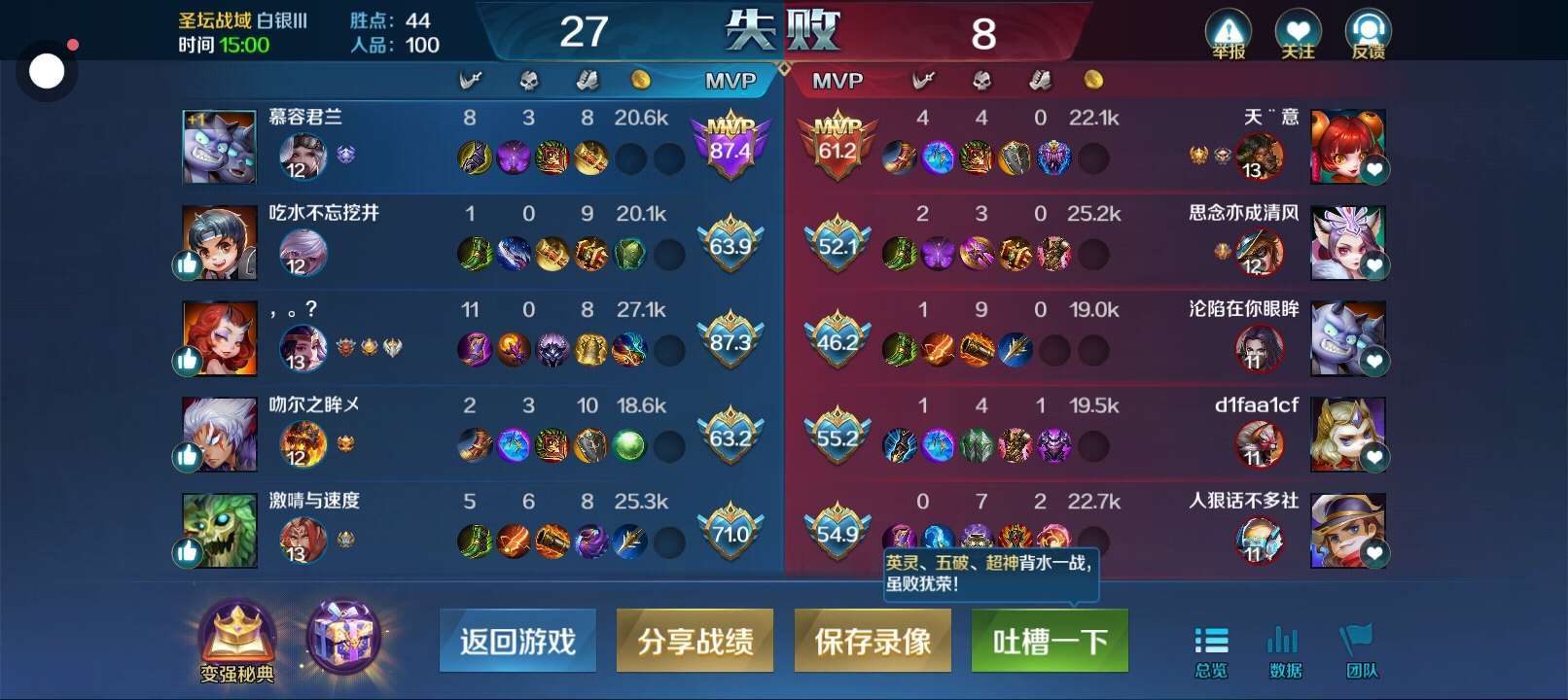 家人们我就一直搞不懂了,明明我伤害最高,但是为什么我输了呀?