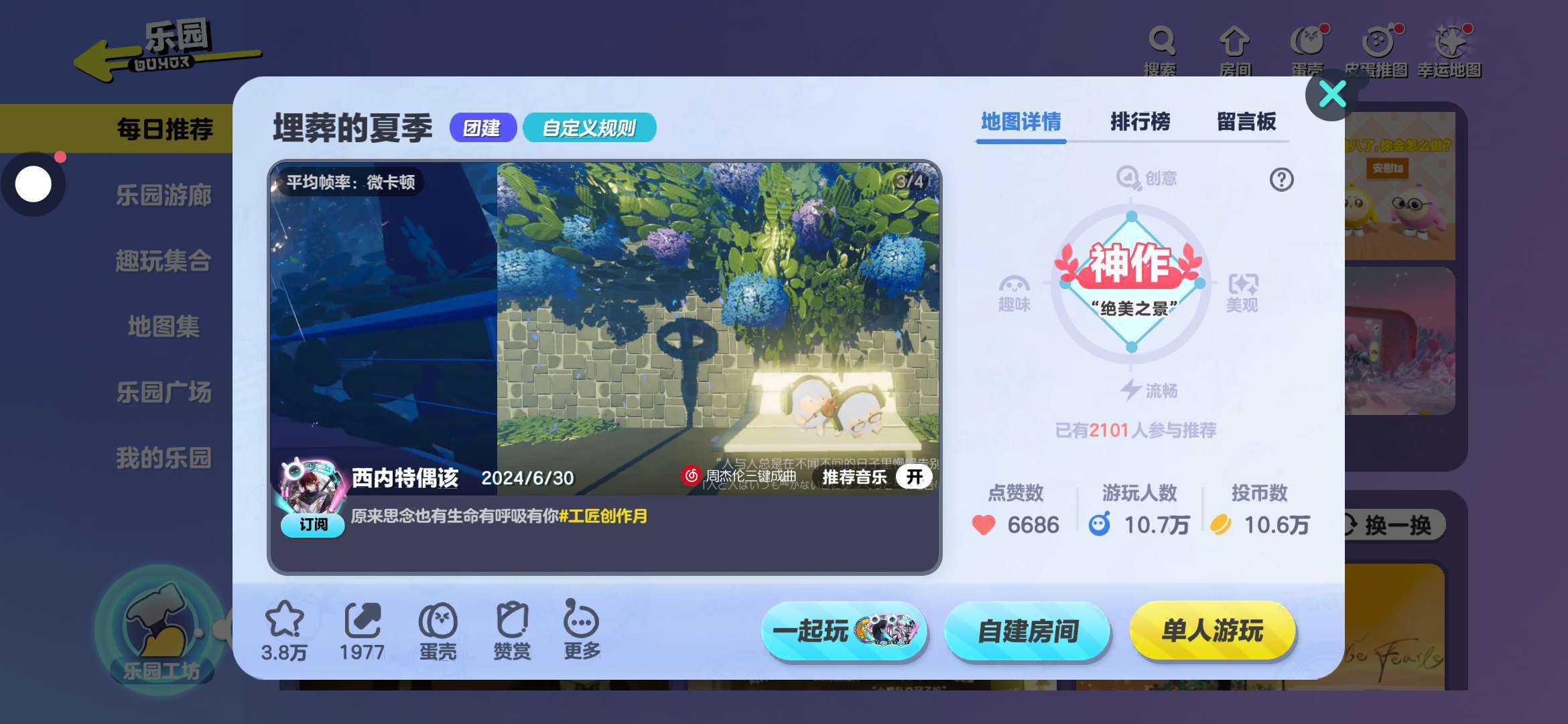 很喜欢的一个地图,在无论是在哪一个场景都非常的绝绝子,天气也是很好看的,对于我来说,这个地图还是很简单的,速度带上你的蛋搭子一起来。这个地图打卡吧