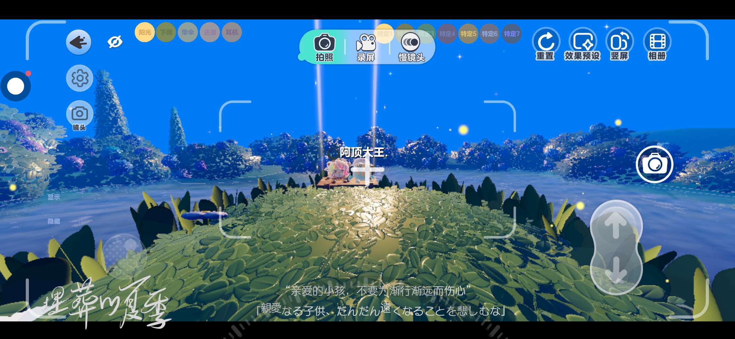 这里差不多就到终点了,还要找到一个蝴蝶就可以,到了还可以穿梭任何打卡点,这个也是非常美丽的一个。亲爱的小孩,不要为渐行渐远而伤心,作者大大找的文案真的超级贴合每一个打卡点啊,真的好爱(//∇//)