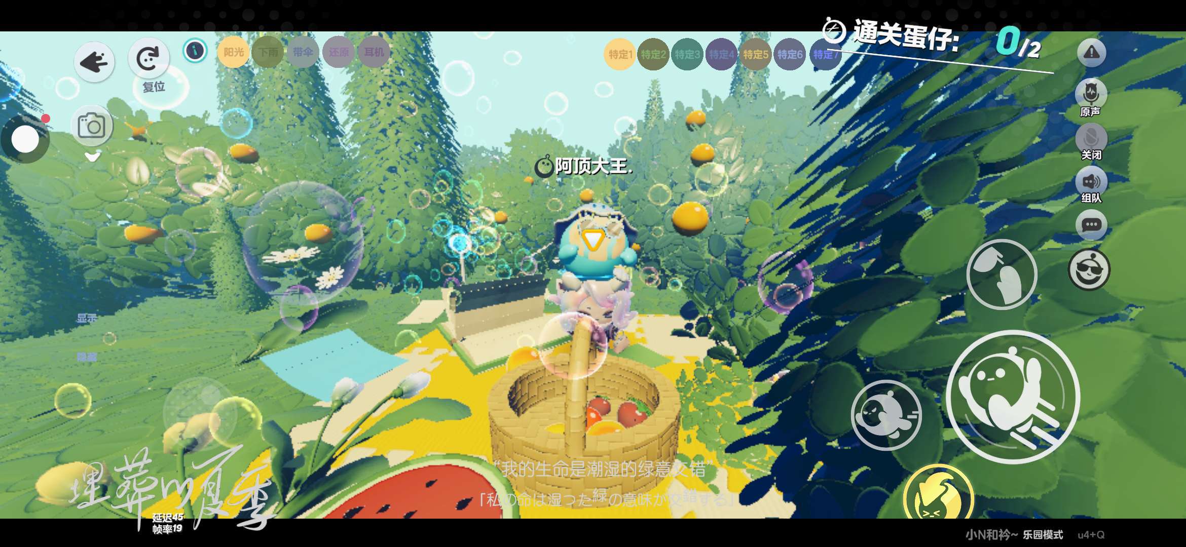 跑呀跑呀,跑到了这个非常适合野餐的地方,氛围感也是超级满的呢,有一半西瓜篮子里面装了一些水果,四周有很多泡泡,真的超级喜欢,谁懂?(//∇//)