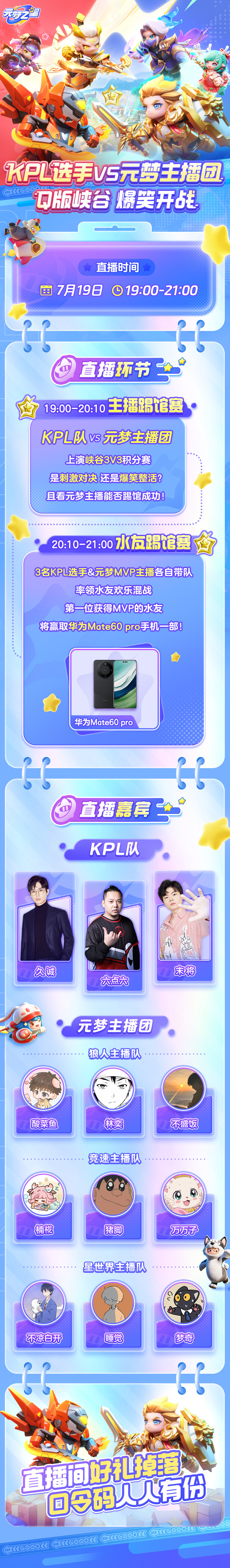 嘿嘿~其实上面的信息还只是峡谷3v3模式的冰山一角哦!如果星宝们还没看过瘾,那就在7月19日19:00锁定元梦之星官方直播间,来看更多关于峡谷3v3的内容吧!超多精彩内容,等你来看!