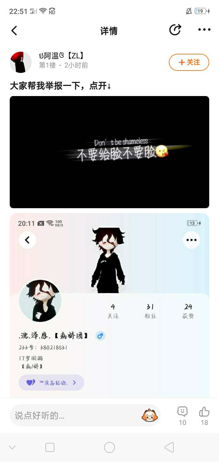 佩服啊,我就想问一个人为啥要平白无故骂一个人呢小小年纪不学好,非要学盗号🤩发动态倒打一耙真是神了,我朋友不说,但不代表他是傻子🤨我在此主场