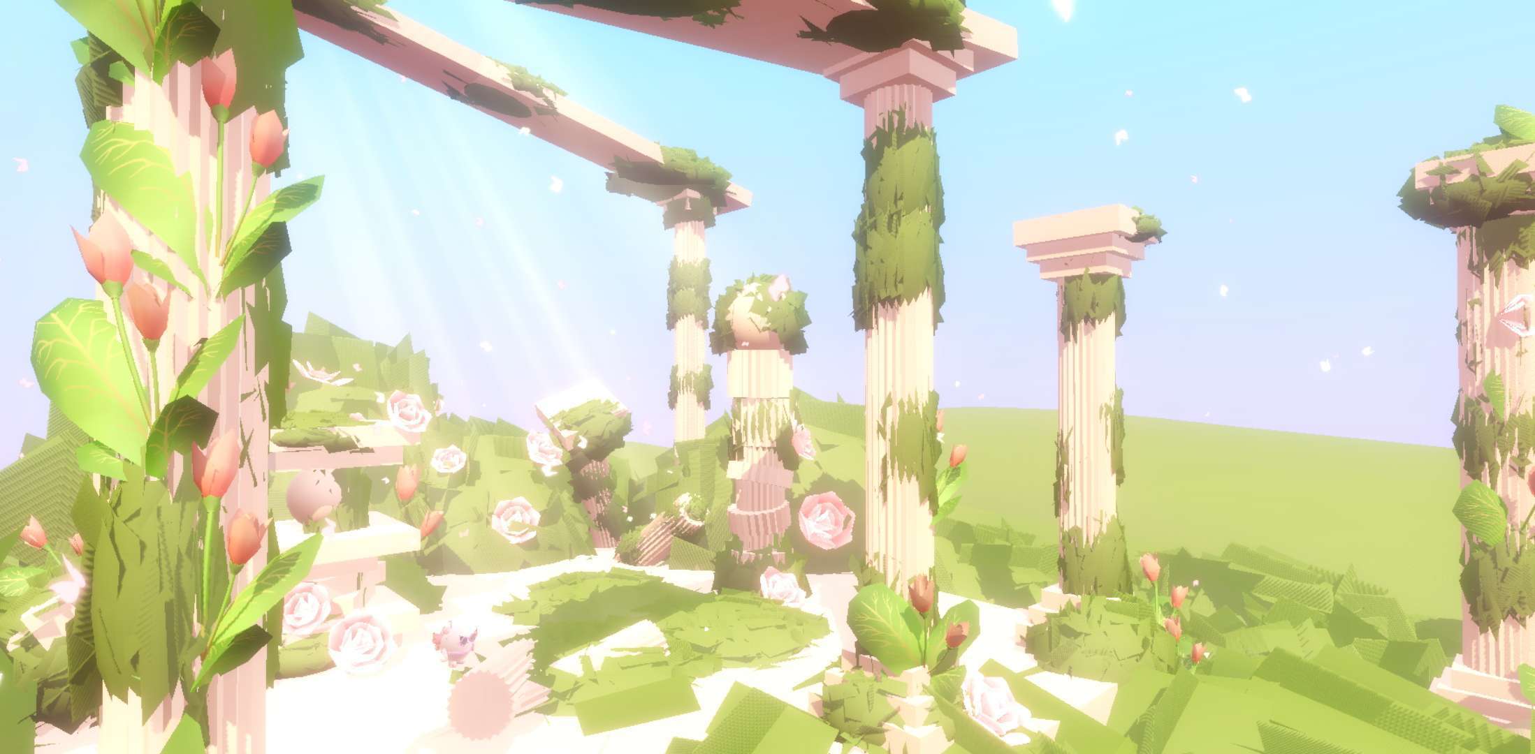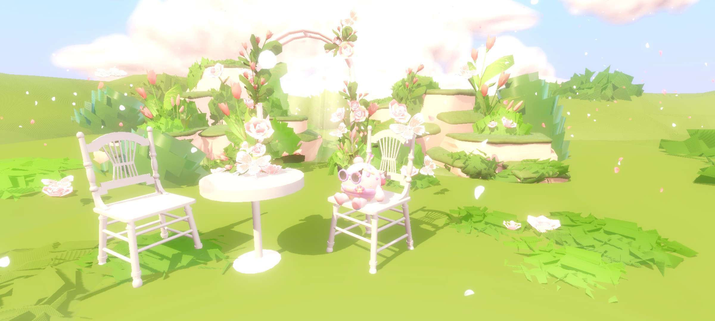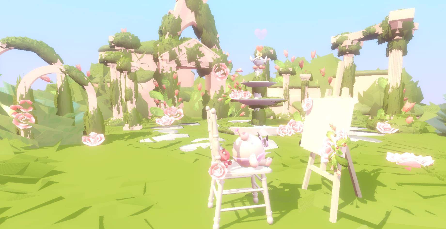 这个场景增加了画板的互动物 就连椅子 画板都有花朵装饰 不远处还有喷泉 喷泉顶上还有个丘比特 建筑也是做得非常细致的 打满分!✨
