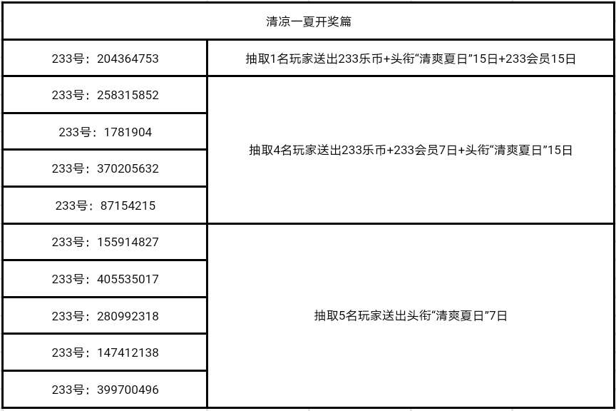 抽取1名玩家送出233乐币+头衔“清爽夏日”15日+233会员15日