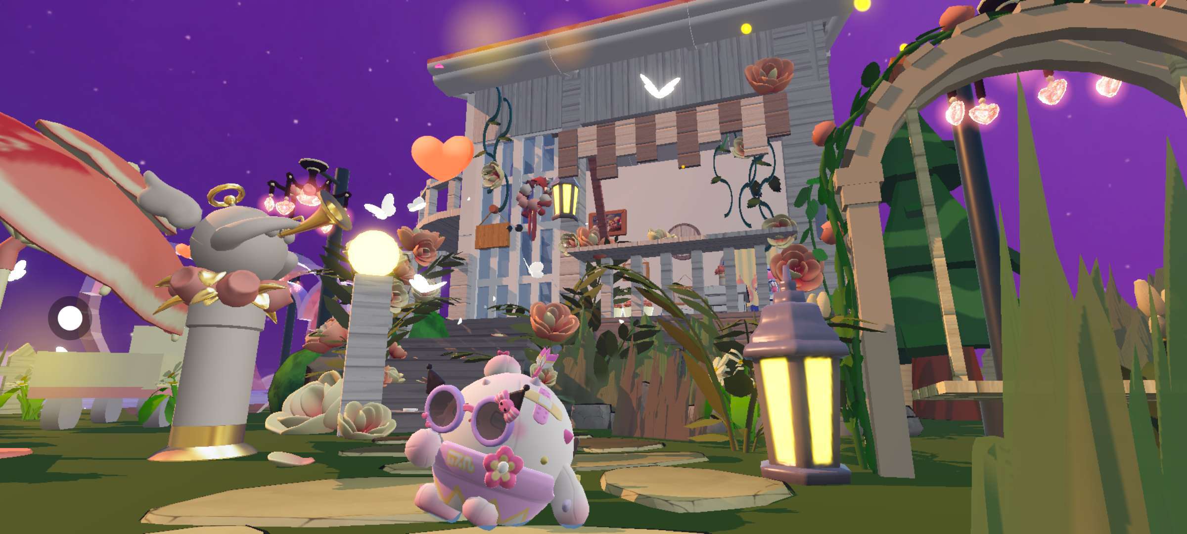 真的超赞 🔥房子以白色调为主💖有一个小旋转楼梯 楼梯扶手上长满了粉色的山茶花 台阶上还有零零散散掉落的山茶花✨房子边上还有一个小秋千 拍照也是杠杠的💪深紫色的夜空💜 一座孤岛上的山茶花铺💓周边还有路灯做点缀🌈夏夜的氛围感拿捏稳稳的👌
