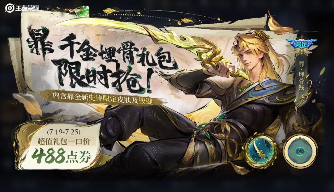 开启千金埋骨超值礼包,可获得暃-埋骨钱皮肤x1、埋骨钱个性按键