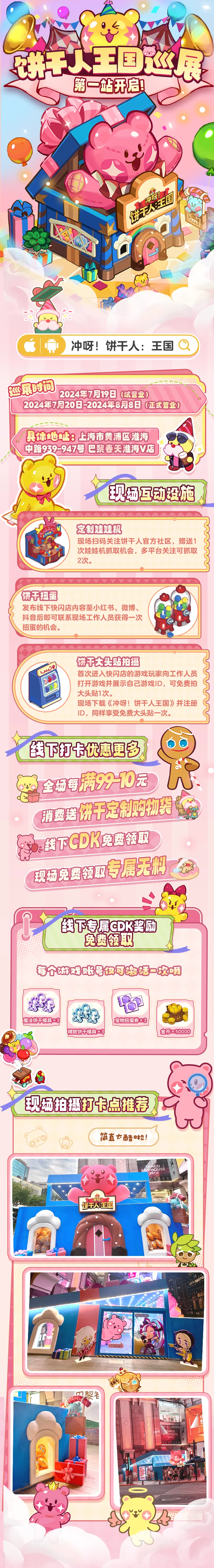 4、线下专属CDK:7月20日起,满足指定条件即可现场可领取线下专属CDK(内含魔法饼干模具、精致饼干模具、宝物扭蛋券、金币等道具~)