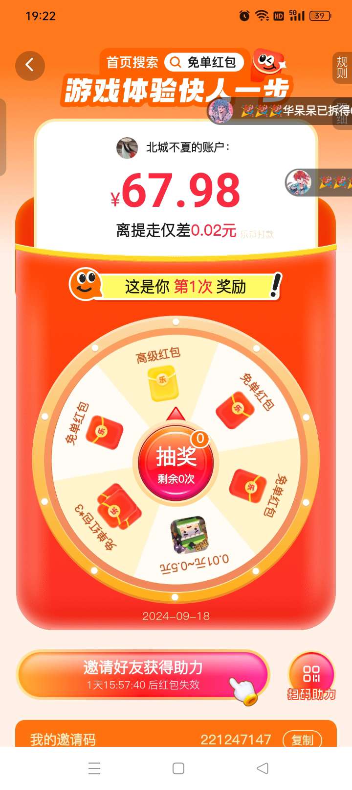 免单红包谁来助力一下谢谢,我的助力号是221247147助力后写下自己的我也帮