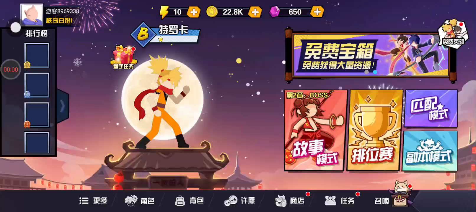 【联机对战,制霸榜单】 游戏内置两种实时对战模式。不论你是想跟好友一较高下,还是随意匹配一位陌生玩家切磋武艺。1秒打开游戏,60秒爽翻一局。 【冒险副本,挑战闯关】 丰富的剧情模式,你可以挑战各个地图的守护BOSS,战胜强大的对手,成为宇宙第一! 【超多英雄,专属变身】 游戏中有众多可供玩家使用的英雄角色,每个英雄都有自己的专属变身技能。英雄变身后不仅属性会大幅提高,还可以使用角色最强的招牌必杀,伤害爆表! 【福利多多,特色彩蛋】 游戏内还设置了许多奖励丰厚的彩蛋,隐藏关卡。搭配开局就送的免费50抽,S级角色唾手可得 【动感对波,实时酣战】 当双方同时使用必杀技时,“对波”中的双方要比拼毅力和手速,把冲击波推到对方身上就能打出爆炸伤害。