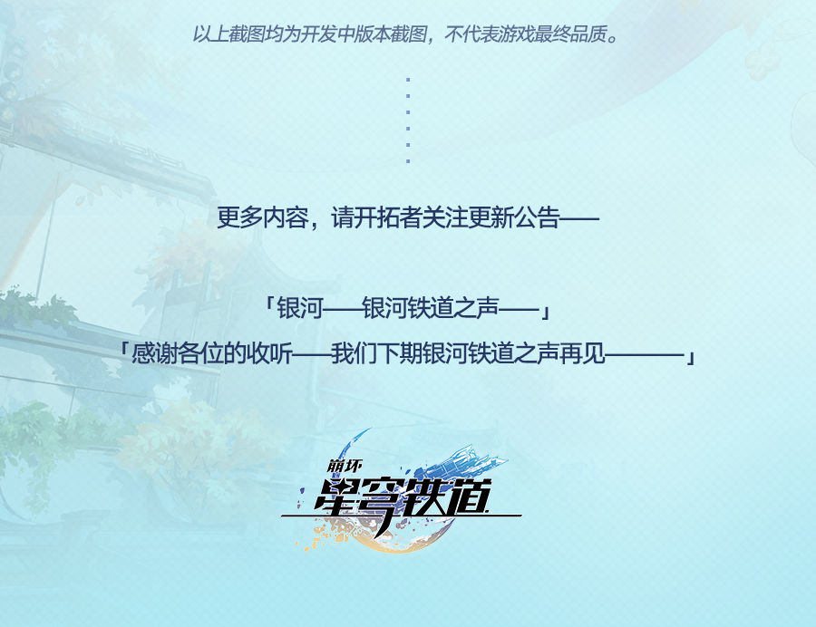 本期银河铁道之声的主题是——更新电台!本期节目将会给开拓者介绍2.4版本中部分优化与新增功能。一起来看看吧~
