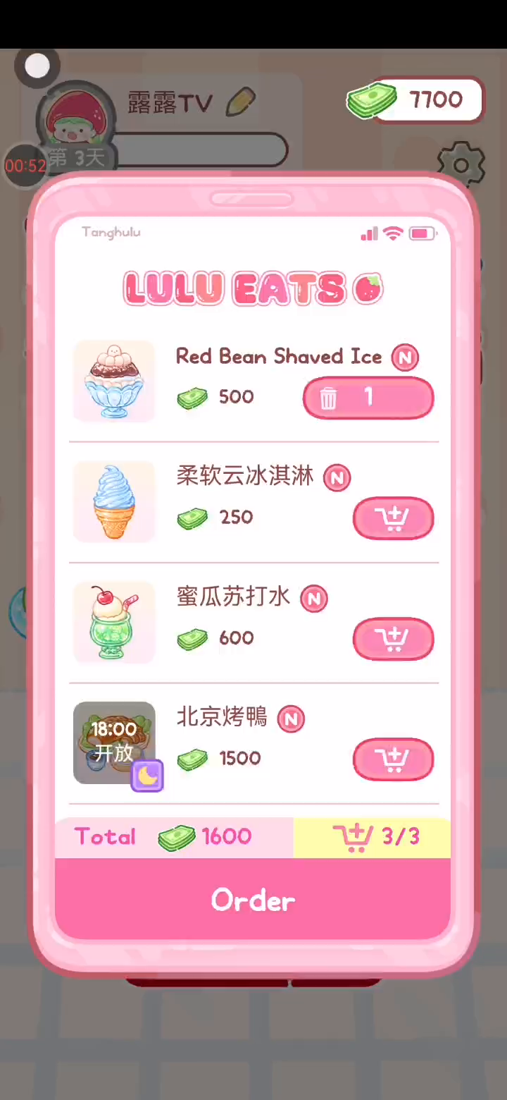 更新宠物!!! 「你进行草莓糖葫芦吃播的话,我就赞助100元。」 「脆口的声音太迷人了(°θ°)」 由于客人都被最近新开的许多糖葫芦店家抢走,曾经号称糖葫芦达人的父母因此卧病在床。 继承父母店面的主角露露开始糖葫芦吃播来宣传店面。 直到成为真正的糖葫芦达人那一天! 「今天我也要开始糖葫芦直播罗!( •o• )」 [串材料] 只有新鲜的水果的话,很难以一名吃播实况主存活下来。还要有松饼、地球软糖、青阳辣椒!利用奇特的材料制作糖葫芦吧。 [裹糖衣] 将材料串满竹签的话,就放进锅子搅动吧。唯有利用达人的秘法,才能裹出又薄又脆的糖衣。 [即时吃播] 咔哒咔哒!今天的吃播也大成功。热烈的聊天内容看起来反应也不错。看来得利用完成观众任务得到的赞助金来买新材料了! 来,准备好了吧?现在就马上挑战成为糖葫芦达人吧!