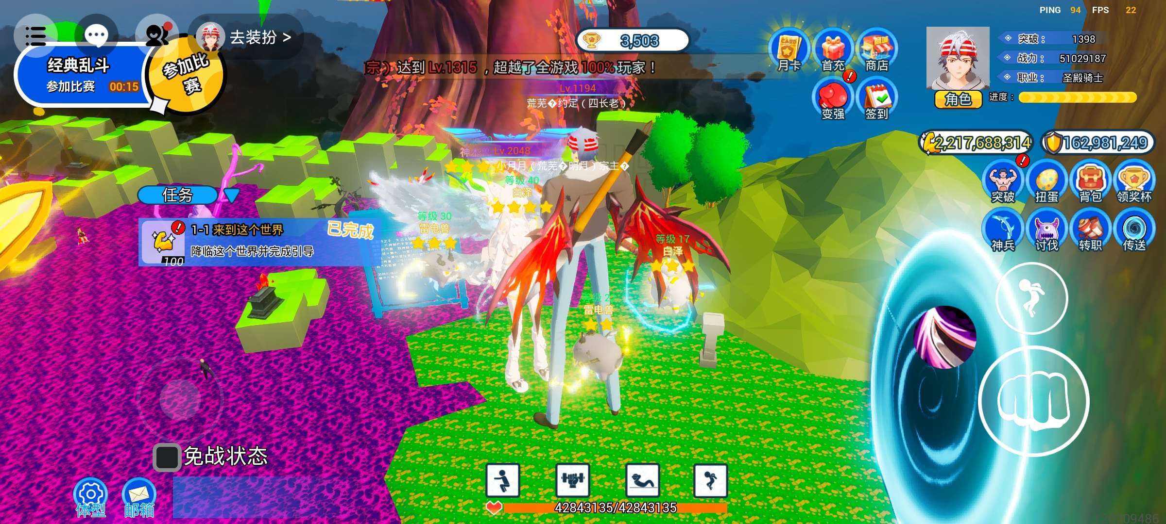 作者又卡bug了。我才1100多级,左右上角给我显示1300多级?