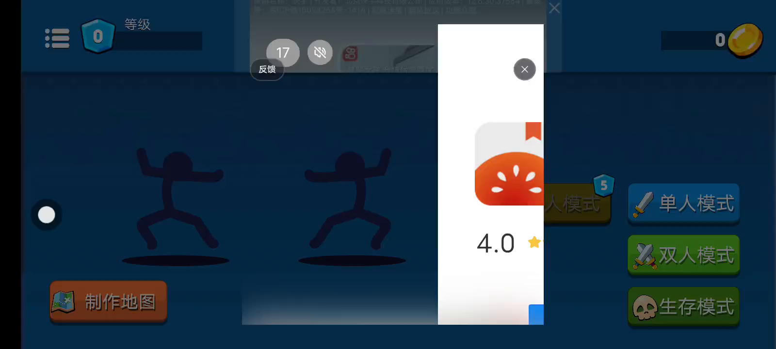 主播推荐:超好玩的双人火柴人对决动作游戏。玩家将扮演一个火柴人角色,通过操控角色进行战斗和竞技。整体游戏操作相当的刺激,还能够感受到对敌人造成的强烈的打击感,致力于带给您前所未有的冒险体验。 玩法主要包括战斗和竞技两种模式。在战斗模式中,选择不同的火柴人进行对战,使用不同的武器和技能进行攻击。在竞技模式中,则需要完成各种挑战和难题。多种武器和技可供选择,例如冲锋枪、长矛、火箭等。每种武器都有特殊属性和攻击方式。此外还有各种技能和道具可供使用,增加角色的生命值和攻击力。 1、没有任何的格斗规则,上去就是干就完事了,干懵对手赢得胜利; 2、经典火柴人对决,魔性十足的格斗动作,非常热血激情; 3、收集各种武器战斗,更有双人模式、自制地图,各种隐藏玩法!