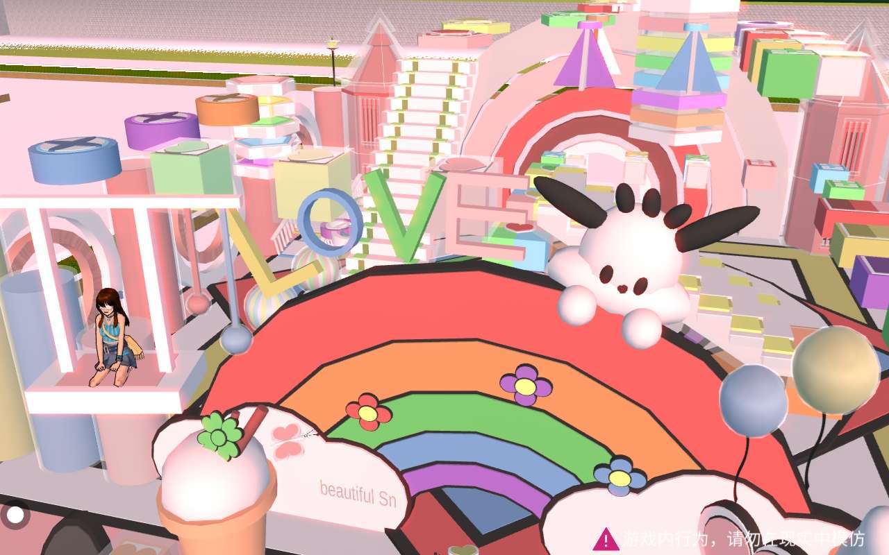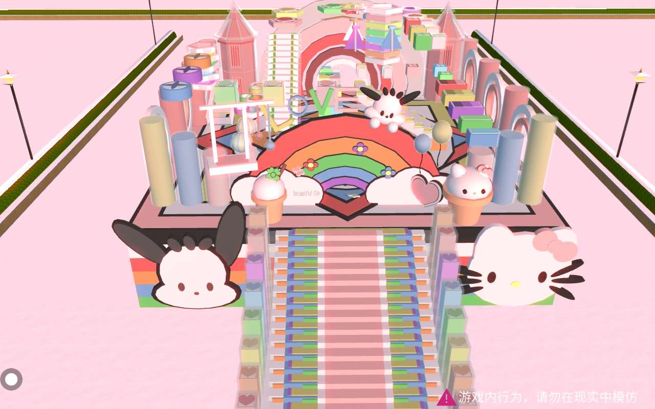 添加了许多的可爱元素‼️冰淇淋🍨彩虹🌈气球🎈秋千 花花💐蝴蝶🦋还有两只吉祥物💤