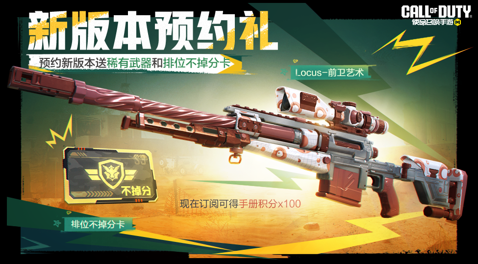 ● 【新版本预约礼】即将上线,参与新版本订阅,登录领取稀有级武器:Locus-前卫艺术;