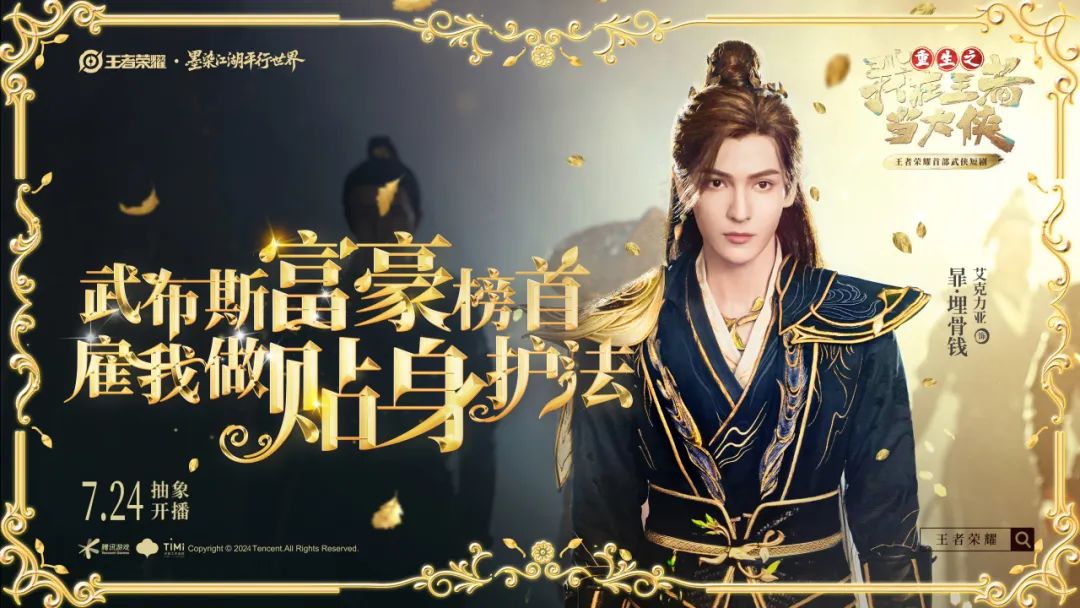 7月24日王者荣耀首部武侠短剧《重生之我在王者当大侠》全平台官方账号抽象开播!!