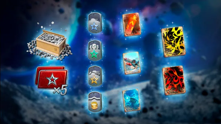 用宇宙速度加入战斗并在每场胜利后获得导弹!用它们兑换屏幕,资源,1个车库屏幕的遥控器,带有传奇涂装的VI级IV号战车炮塔升级型和VI级探求者。