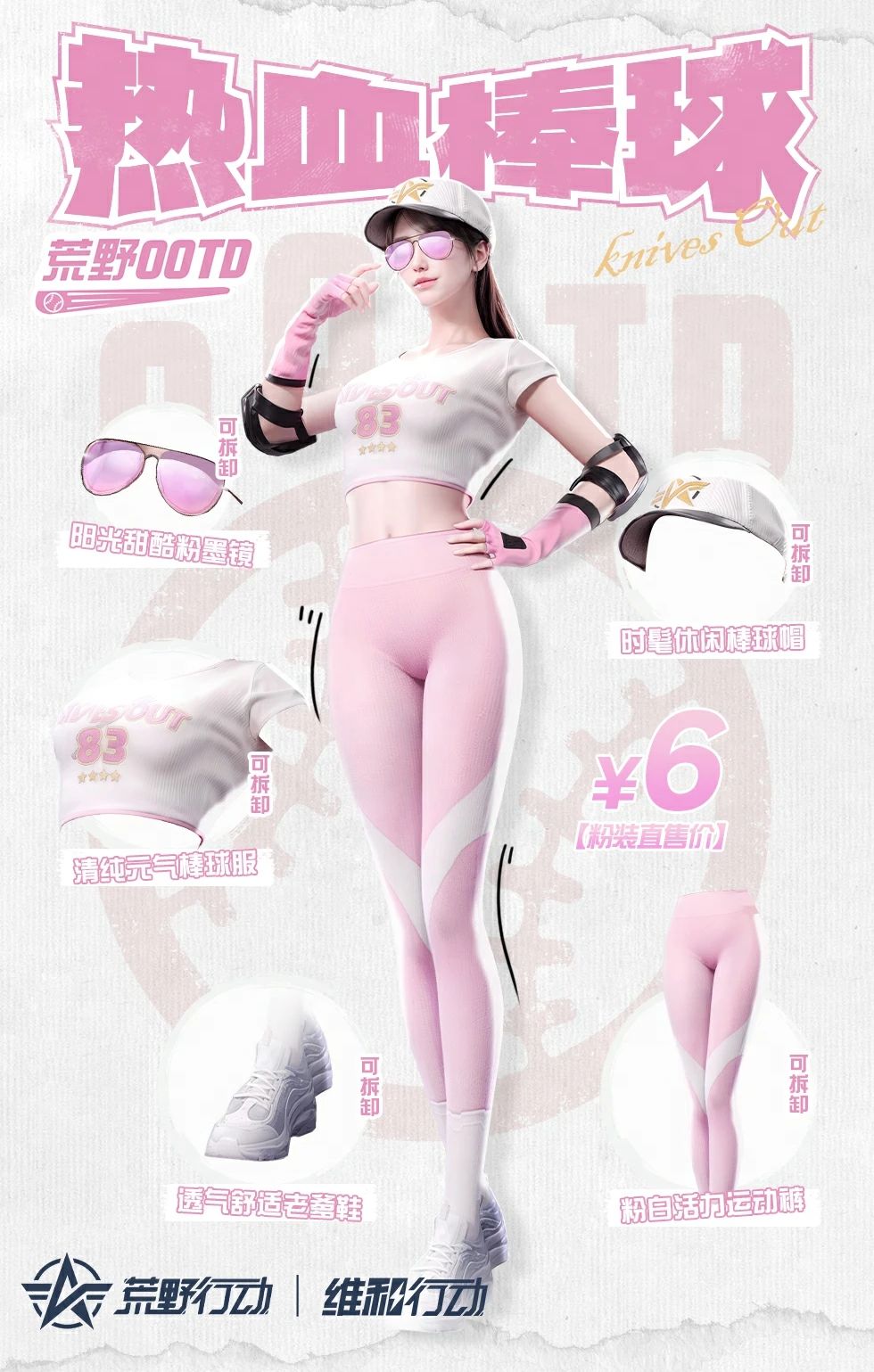 在炎炎夏日进行户外棒球运动,做好防护是必要的!护肘和粉色护腕保护肌肤不受损伤,粉色偏光太阳镜时尚靓丽,同时避免眼睛受到紫外线的伤害。