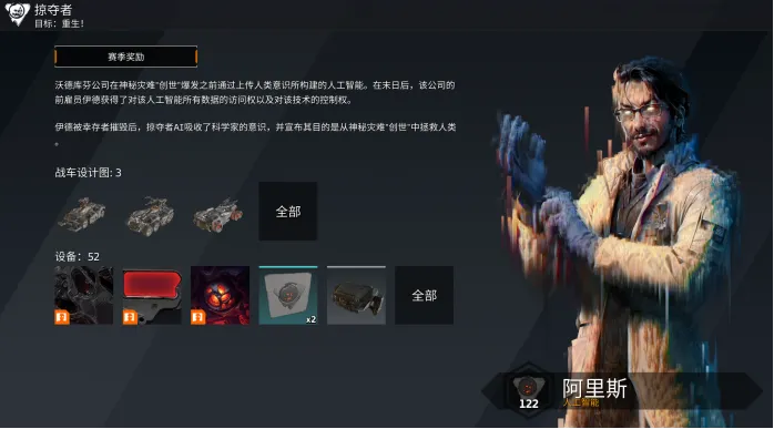 此外,事实证明,并不是所有的掠夺者都跟随着他们自封的领袖进入了数字地狱,而这也意味着战争还远未结束。在伊德被幸存者摧毁后,掠夺者AI吸收了科学家的意识,如今它的形象更像是前沃德库芬雇员“阿里斯泰俄斯”,并宣布其目的是从神秘灾难"创世"中拯救人类。