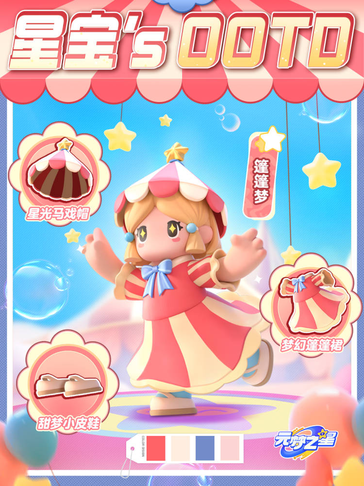 戴着星光马戏帽,穿着梦幻篷篷裙和甜梦小皮鞋的篷篷梦,总能让每一位星宝的脸上都充满笑容