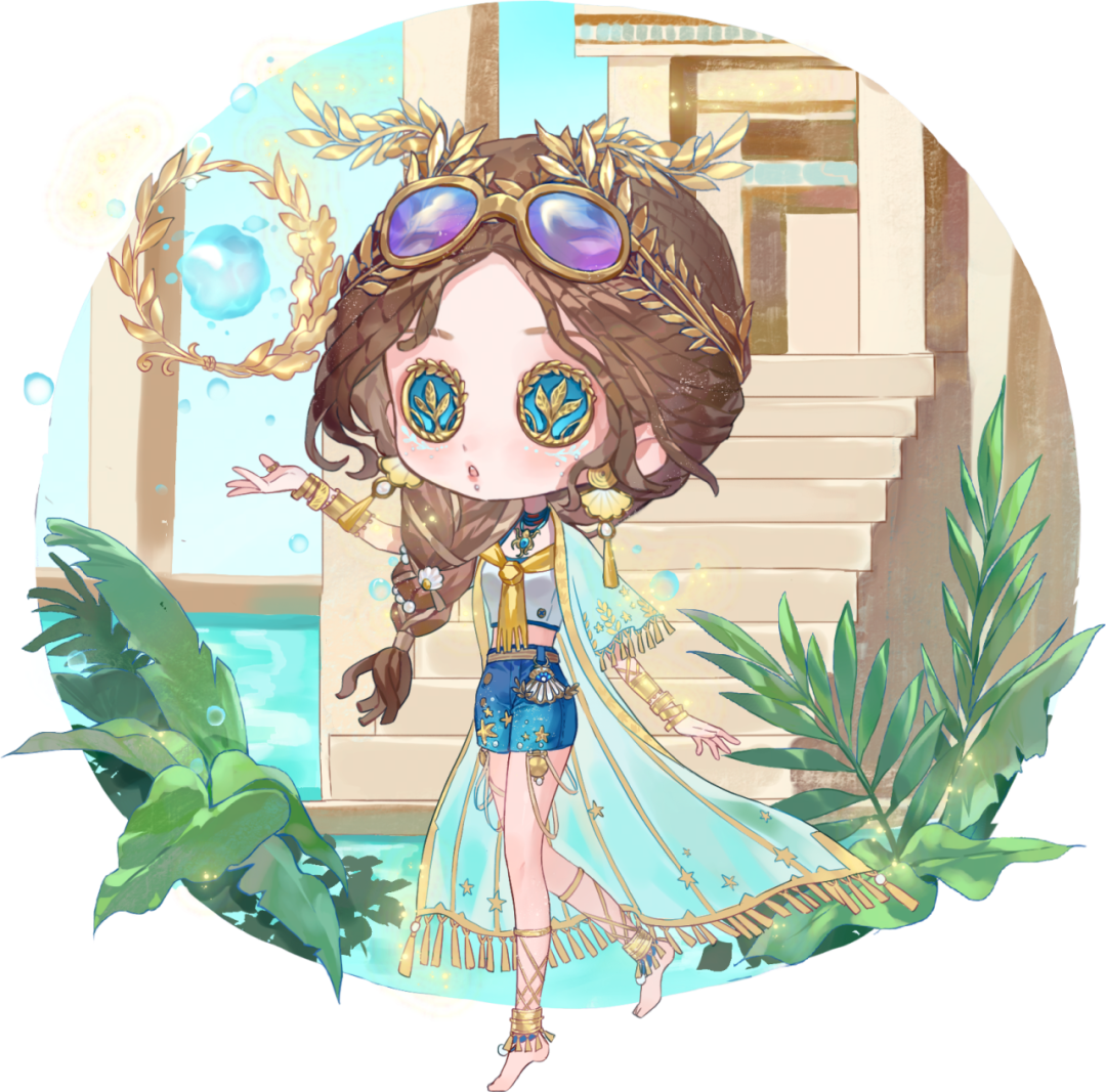 淘气的小水泡于身旁冒出,鎏金的橄榄叶从她身上飘落。随着她的步伐,坎肩流苏在空中舞蹈。聆听她的呼唤,圣火依旧炽热。