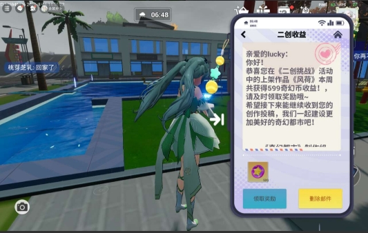 -收益说明:每成功被其他市民收藏一次,参与二创的市民将获得售卖价格*50%的奇幻币收益,收益将通过游戏内邮件发送,获得收益的市民宝宝们记得及时查收哦,同时装扮将保持持续公开,收益不断;