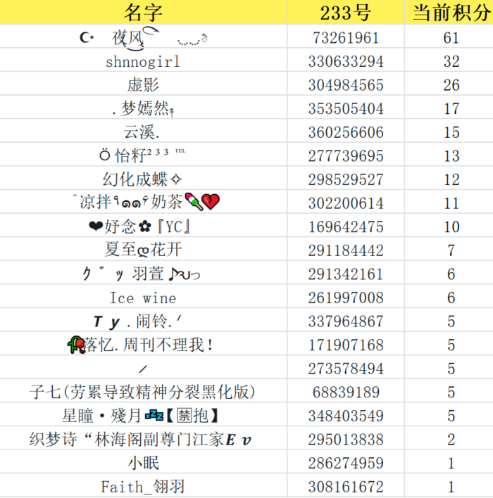 【内测积分排行】