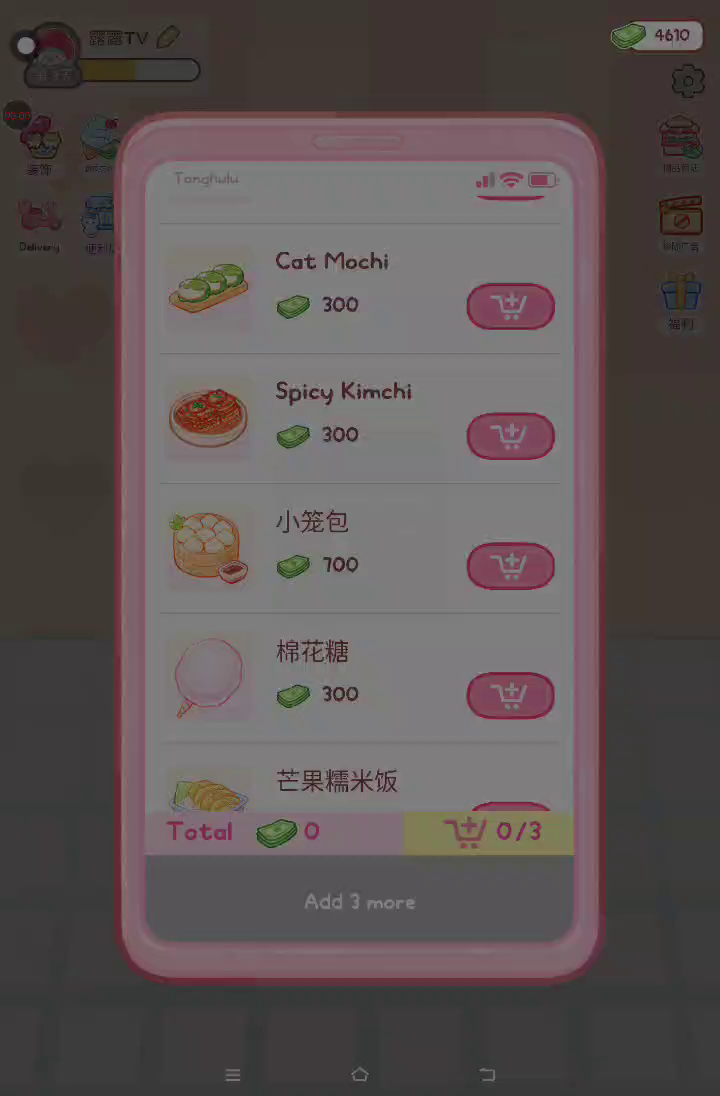 更新宠物!!! 「你进行草莓糖葫芦吃播的话,我就赞助100元。」 「脆口的声音太迷人了(°θ°)」 由于客人都被最近新开的许多糖葫芦店家抢走,曾经号称糖葫芦达人的父母因此卧病在床。 继承父母店面的主角露露开始糖葫芦吃播来宣传店面。 直到成为真正的糖葫芦达人那一天! 「今天我也要开始糖葫芦直播罗!( •o• )」 [串材料] 只有新鲜的水果的话,很难以一名吃播实况主存活下来。还要有松饼、地球软糖、青阳辣椒!利用奇特的材料制作糖葫芦吧。 [裹糖衣] 将材料串满竹签的话,就放进锅子搅动吧。唯有利用达人的秘法,才能裹出又薄又脆的糖衣。 [即时吃播] 咔哒咔哒!今天的吃播也大成功。热烈的聊天内容看起来反应也不错。看来得利用完成观众任务得到的赞助金来买新材料了! 来,准备好了吧?现在就马上挑战成为糖葫芦达人吧!