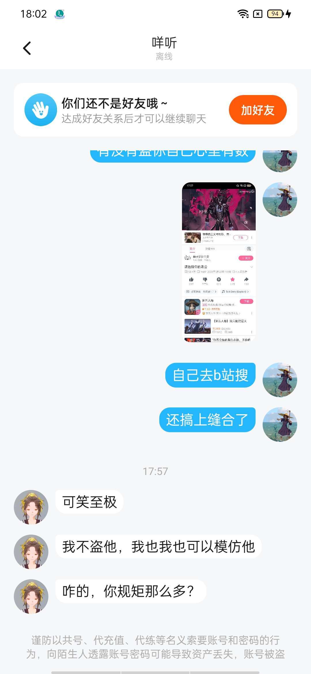 盗视频的急眼了,还把我删了