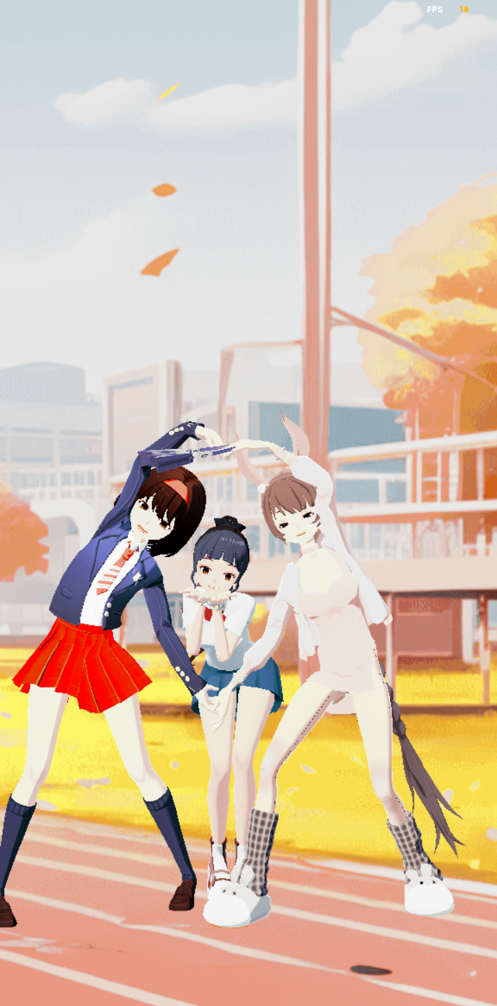 三人比心校园操场我们一起比心