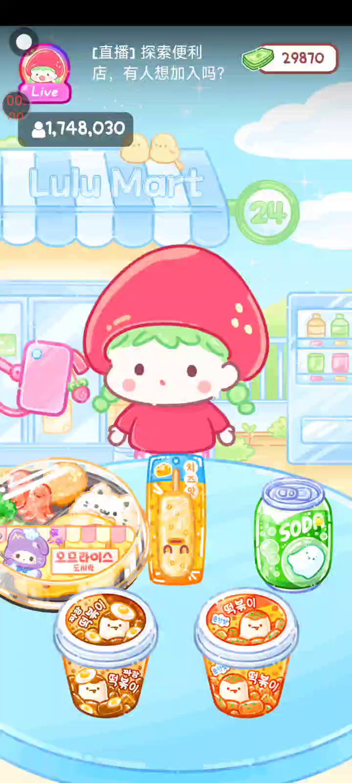 更新宠物!!! 「你进行草莓糖葫芦吃播的话,我就赞助100元。」 「脆口的声音太迷人了(°θ°)」 由于客人都被最近新开的许多糖葫芦店家抢走,曾经号称糖葫芦达人的父母因此卧病在床。 继承父母店面的主角露露开始糖葫芦吃播来宣传店面。 直到成为真正的糖葫芦达人那一天! 「今天我也要开始糖葫芦直播罗!( •o• )」 [串材料] 只有新鲜的水果的话,很难以一名吃播实况主存活下来。还要有松饼、地球软糖、青阳辣椒!利用奇特的材料制作糖葫芦吧。 [裹糖衣] 将材料串满竹签的话,就放进锅子搅动吧。唯有利用达人的秘法,才能裹出又薄又脆的糖衣。 [即时吃播] 咔哒咔哒!今天的吃播也大成功。热烈的聊天内容看起来反应也不错。看来得利用完成观众任务得到的赞助金来买新材料了! 来,准备好了吧?现在就马上挑战成为糖葫芦达人吧!