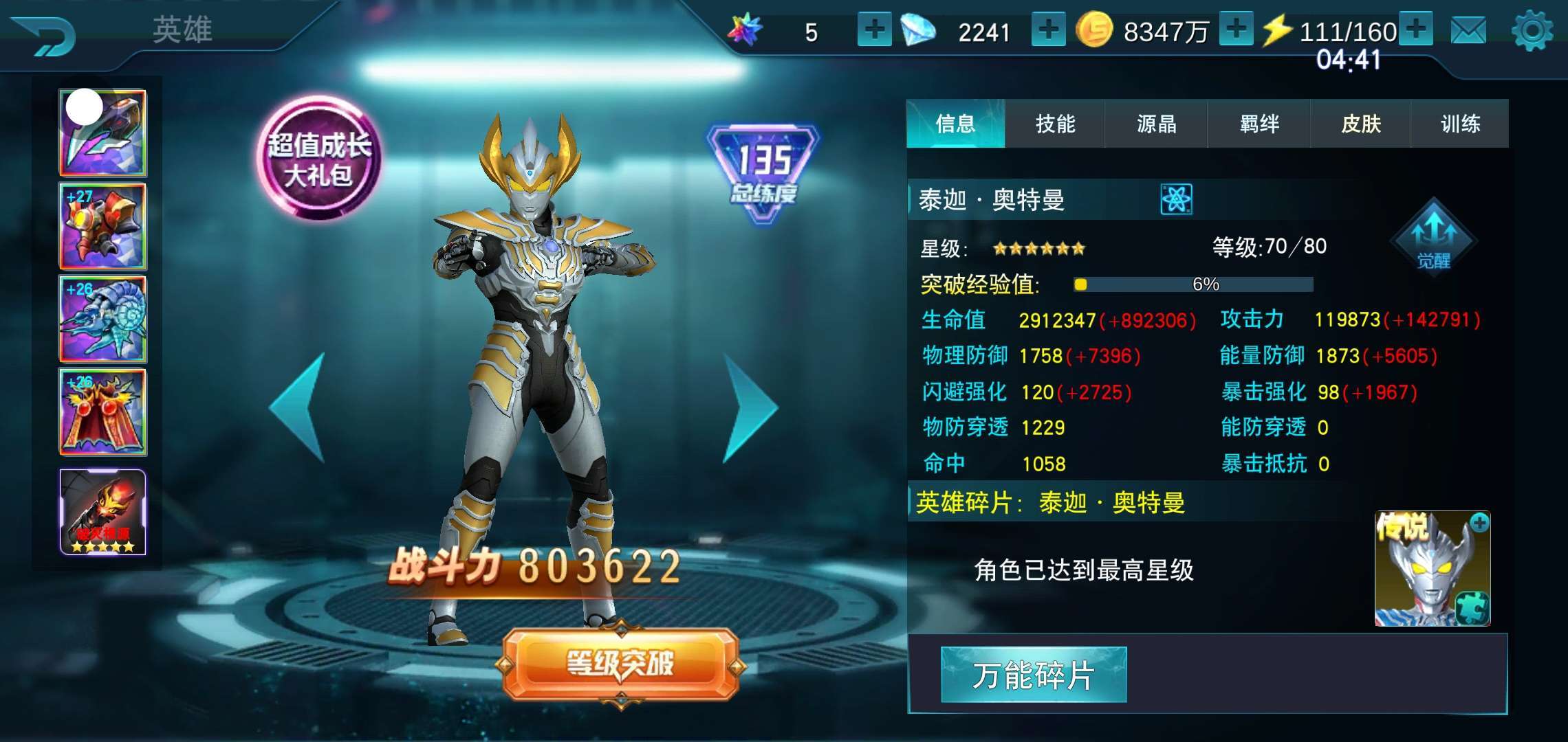 80万拿下,剩下的估计只要把羁绊角色突破满星就够了